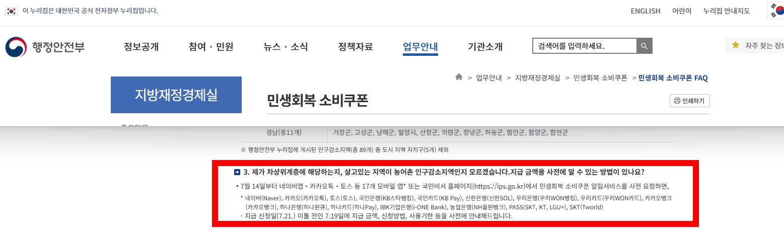 - 확인 방법: 행정안전부 인구감소지역 공식 목록 또는 민생회복지원금 신청 시 지자체 홈페이지에서 확인