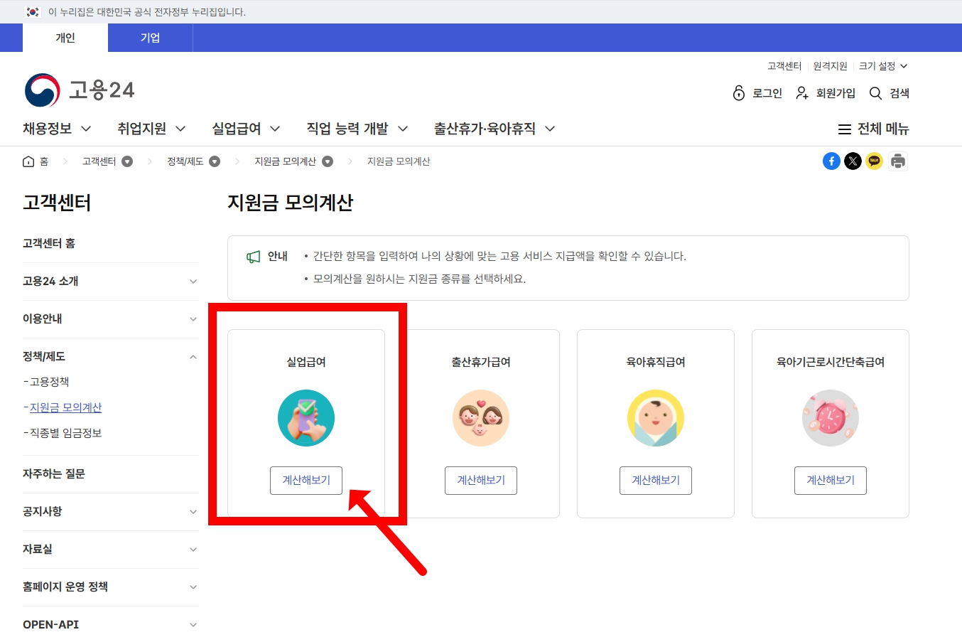 직접 계산하기 번거롭다면, 고용노동부에서 제공하는 실업급여 모의계산기를 활용할 수 있습니다.