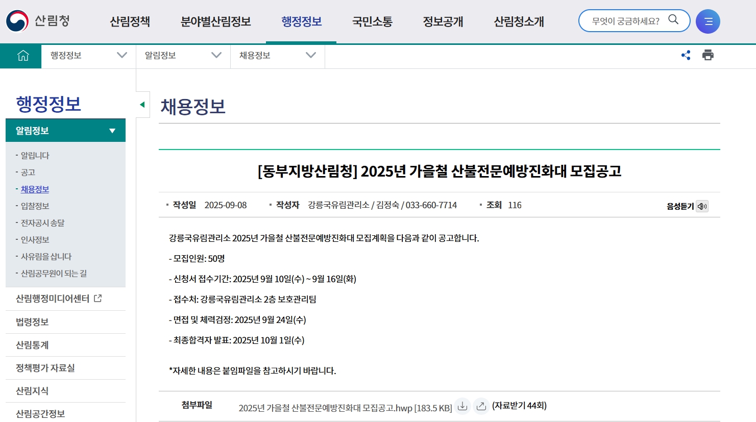👉 지원자는 각 지역 산림과/산림자원과 홈페이지 또는 정부 일자리 포털, 나라일터에서 채용 공고를 확인할 수 있습니다.